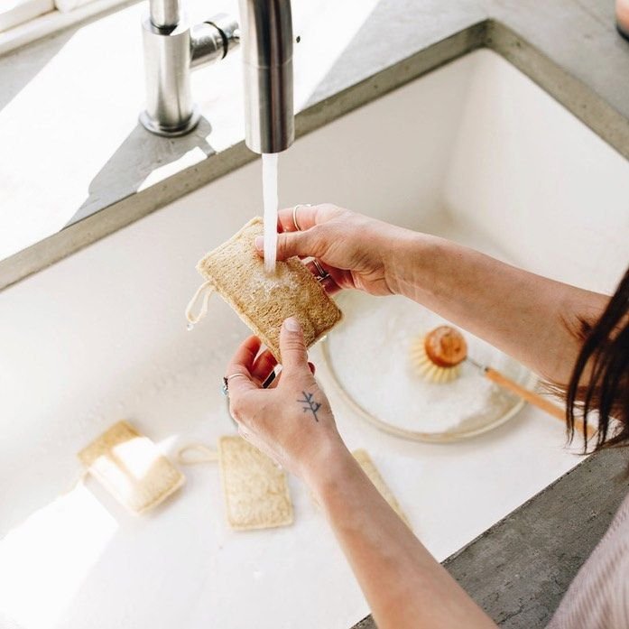 اشطفي إسفنجة المطبخ المستطيلة جيدًا وعلقيها لتجف.